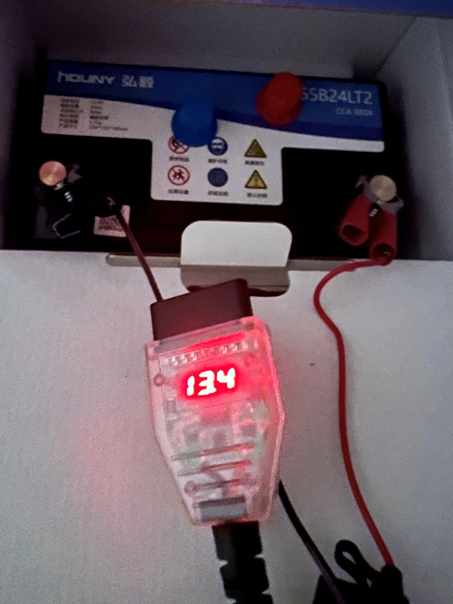 安裝前透過 OBD 記憶保存設備測量,到貨電壓為 13.4V